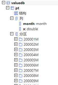 db=database("dfs://valuedb", VALUE, 2000.01M..2016.12M)