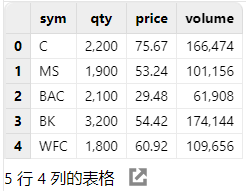 点击数据表变量 pt,在数据浏览器中会展示该表数据。