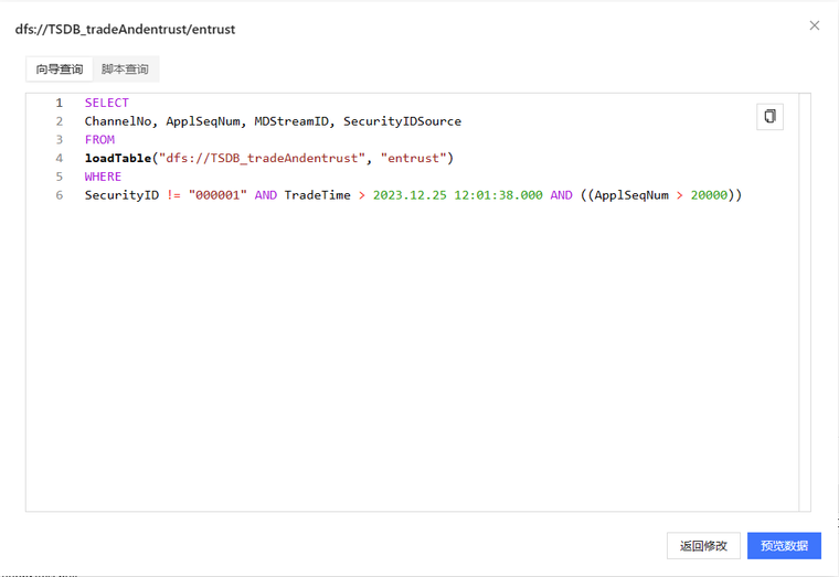 用户亦可在编辑界面中直接输入 SQL 语句以建立查询,在成功执行脚本后预览并导出数据。