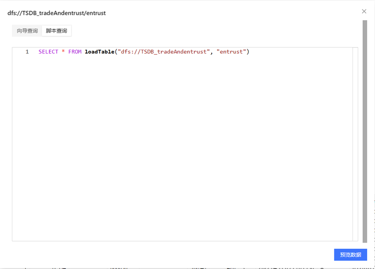脚本查询则是指用户可直接在界面中编写 SQL 脚本,在成功执行后预览并导出数据。