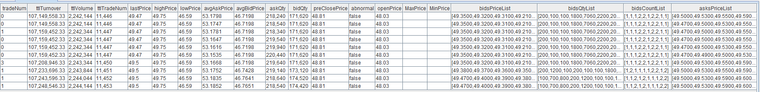 | tradeOrderSellNoTimeList | TIME[] | 当前周期内的有效成交对应的委托的卖单下单时间 |