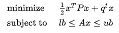 - P 是目标函数的二次项矩阵,且必须是半正定矩阵。