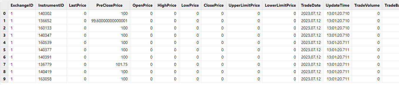 PreClosePriceDOUBLEInstrumentTradeStatusCHARWarrantUpperPriceDOUBLE