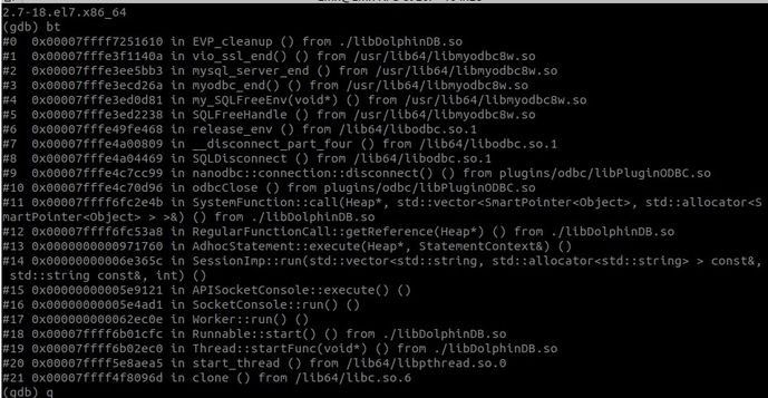 8.0.18以上的 MySql ODBC 在关闭一个 ODBC 连接时,如果这个连接是唯一的连接,会调用 EVP_cleanup() 清理 OpenSSL 的环境。