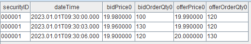 其中 offerPrice0 、 bidPrice0 分别表示卖1价与买1价。