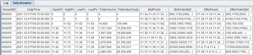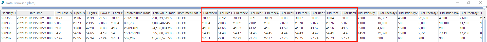 colNames = `SecurityID`DateTime`OpenPx`HighPx`LowPx`LastPx`TotalVolume`TotalValueTrade`BidPrice0`BidOrderQty0`OfferPrice0`OfferOrderQty0