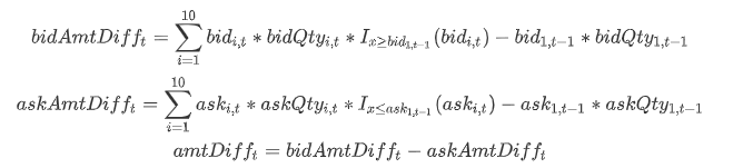 bidAmtDiff = rowSum(bid*bidvol*(bid >= lastBidPrice)) - lastBidPrice*lastBidQty