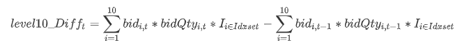 其中 level10_Difft 表示 t 时刻的委买增额;bidi,t 表示 t 时刻快照数据的第 i 档买方报价;指示函数 I 含义如下: