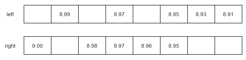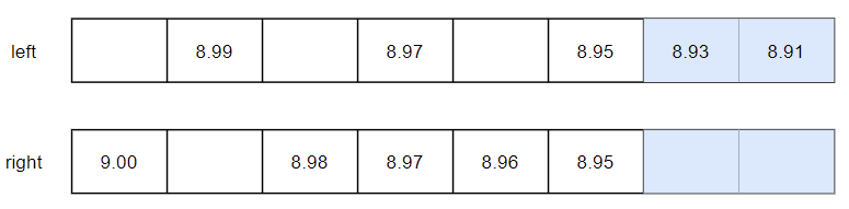 left, right = rowAlign(price, prevPrice, how=iif(buy, "bid", "ask"))