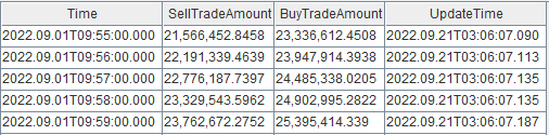 select Time, SellTradeAmount, BuyTradeAmount, UpdateTime from tradeAmountIndex