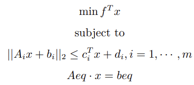 函数参数中无对应项,其值在优化过程中会被确定。SOCP 问题的标准形式: