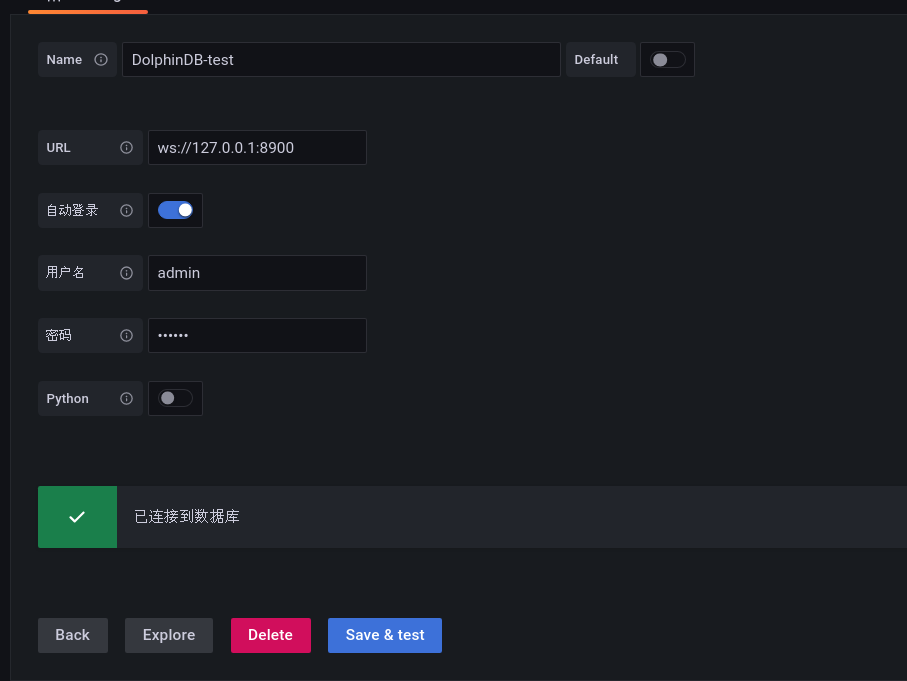 后面就可以使用配置好的数据源,通过编写脚本对 DolphinDB 集群进行监控。如下所示: