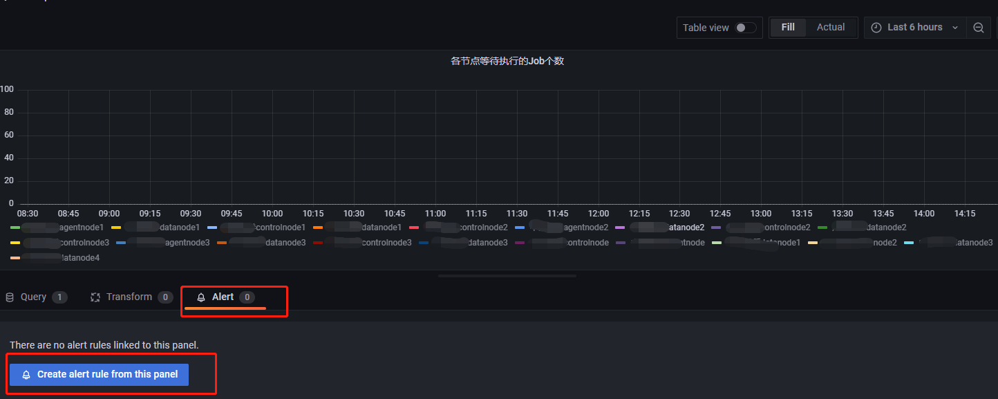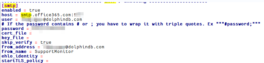 scrape_configs中,以3个控制节点、3个代理节点、3个数据节点的高可用集群为例,在 prometheus.yml 中的scrape_configs模块下添加以下内容:# 用于抓取 DolphinDB 集群对服务器资源的使用情况 对应第二套方案 - job_name: "controlnode1" static_configs: - targets: ["xxxxxxxx:xxx"]#IP:controlnode1端口 - job_name: "controlnode2" static_configs: - targets: ["xxxxxxxx:xxx"]#IP:controlnode2端口 - job_name: "controlnode3" static_configs: - targets: ["xxxxxxxx:xxx"]#IP:controlnode3端口 - job_name: "agentnode1" static_configs: - targets: ["xxxxxxxx:xxx"]#IP:agentnode1端口 - job_name: "agentnode2" static_configs: - targets: [""xxxxxxxx:xxx""]#IP:agentnode2端口 - job_name: "agentnode3" static_configs: - targets: [""xxxxxxxx:xxx""]#IP:agentnode3端口 - job_name: "datanode1" static_configs: - targets: [""xxxxxxxx:xxx""]#IP:datanode1端口 - job_name: "datanode2" static_configs: - targets: [""xxxxxxxx:xxx""]#IP:datanode2端口 - job_name: "datanode3" static_configs: - targets: ["xxxxxxxx:xxx"]#IP:datanode3端口注意:部署 Prometheus 时,要检查配置文件中默认的端口是否被占用,若端口被占用,要更改对应的设置。Prometheus 默认端口为9090,若被占用,要在 prometheus.yml 中的