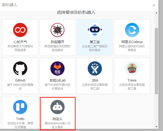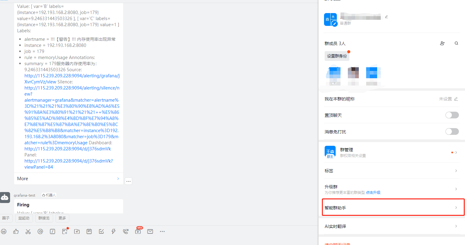 使用钉钉接收告警、预警消息时,要先在钉钉群聊里添加群聊机器人,如下所示