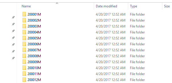 select count(x) from pt;上面的例子定义了一个具有 204 个分区的数据库 db。每个分区是 2000 年 1 月到 2016 年 12 月之间的一个月 (如下图)。在数据库 db 中,表 t 被保存为分区表 pt,分区列为 month。