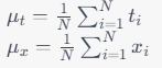 step1:计算信号的时间序列 t 和信号值序列 x 的均值和,即:
