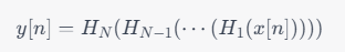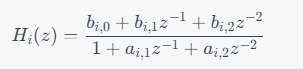 其中,bi,0 ,bi,1,bi,2,ai,1,ai,2 是第 i 个二阶 IIR 滤波器的系数。