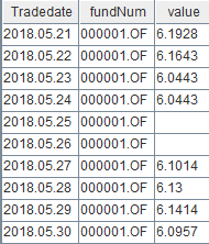 fund_dui_OLAP.columns = ['tradingDate', 'fundNum', 'value', 'price']