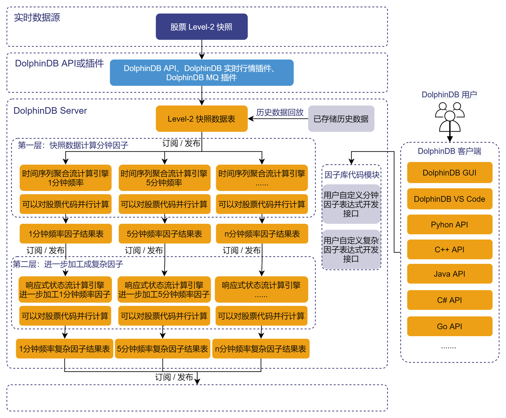 本教程旨在指导用户基于 DolphinDB 快速搭建一个方便、快捷、扩展性好和兼容性强的流批一体因子计算平台原型,提供基于快照数据计算分钟因子和进一步加工分钟因子为复杂因子的功能。