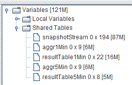 snapshotCsvReplayJob(csvPath, snapshotStream)此时可以在 DolphinDB GUI 中执行函数 now(),起到刷新客户端的效果,可以看到右下角变量栏的结果表不断地在更新,查看结果表中的数据,以 1 分钟计算结果表为例,具体内容如下: