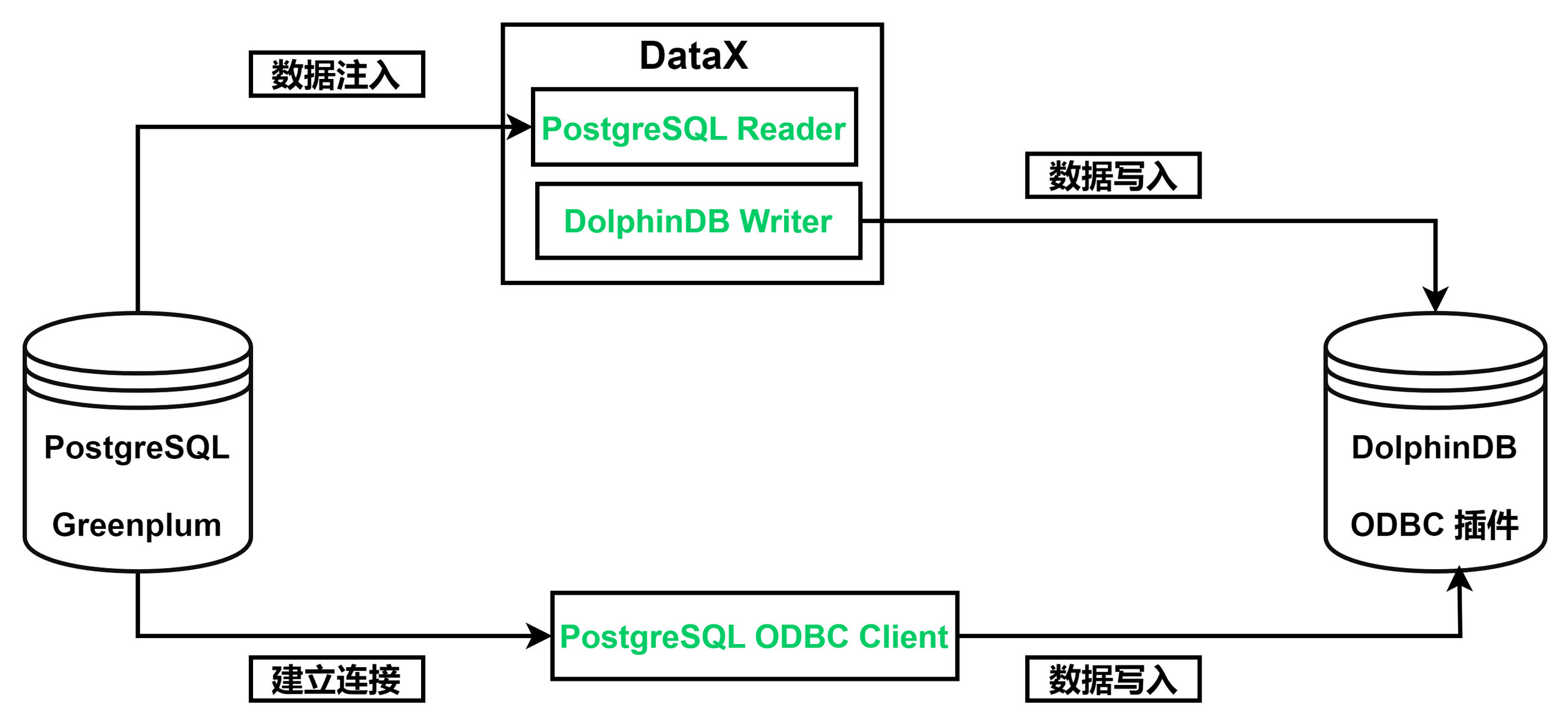综上,ODBC 插件与 DataX 均能实现将 PostgreSql 中数据迁移到 DolphinDB 中,但是各有优缺点:
