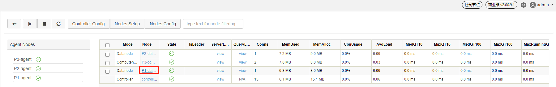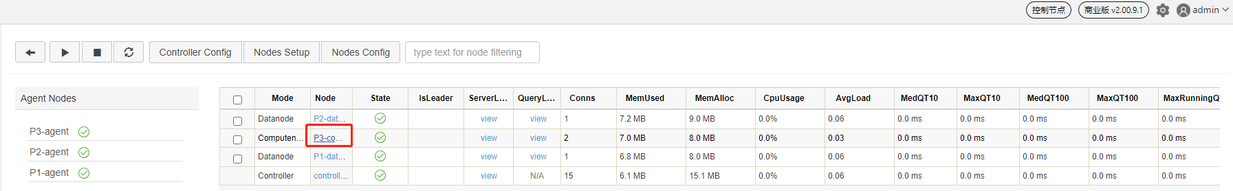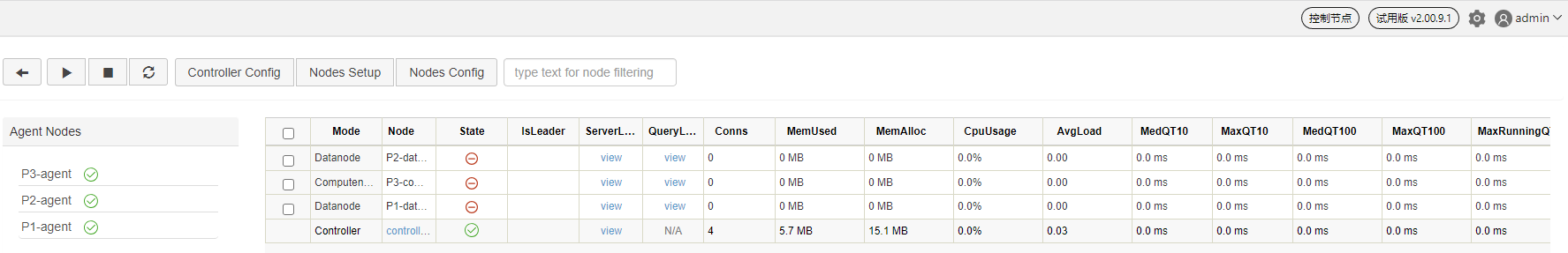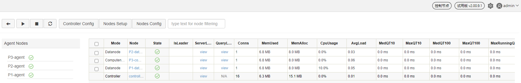 代理节点:代理节点负责执行控制节点发出的启动和关闭数据节点或计算节点的命令。在一个集群中,每台物理服务器有且仅有一个代理节点。