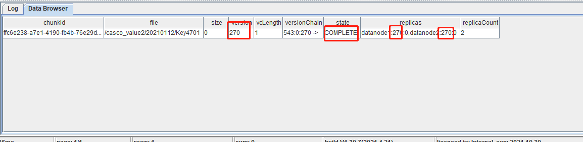 }查看该 Chunk 的状态,如图所示,版本一致,状态变成COMPLETE。