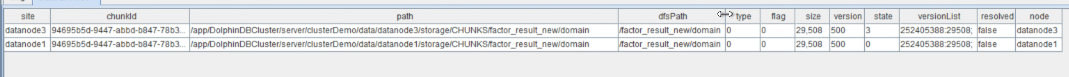 比如,通过select * from pnodeRun(getAllChunks) where chunkId=xxxx 查询数据节点元数据的结果如下: