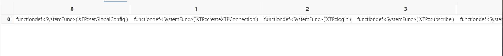 loadPlugin("xtp")插件加载成功,则返回 XTP 行情插件所提供的所有函数: