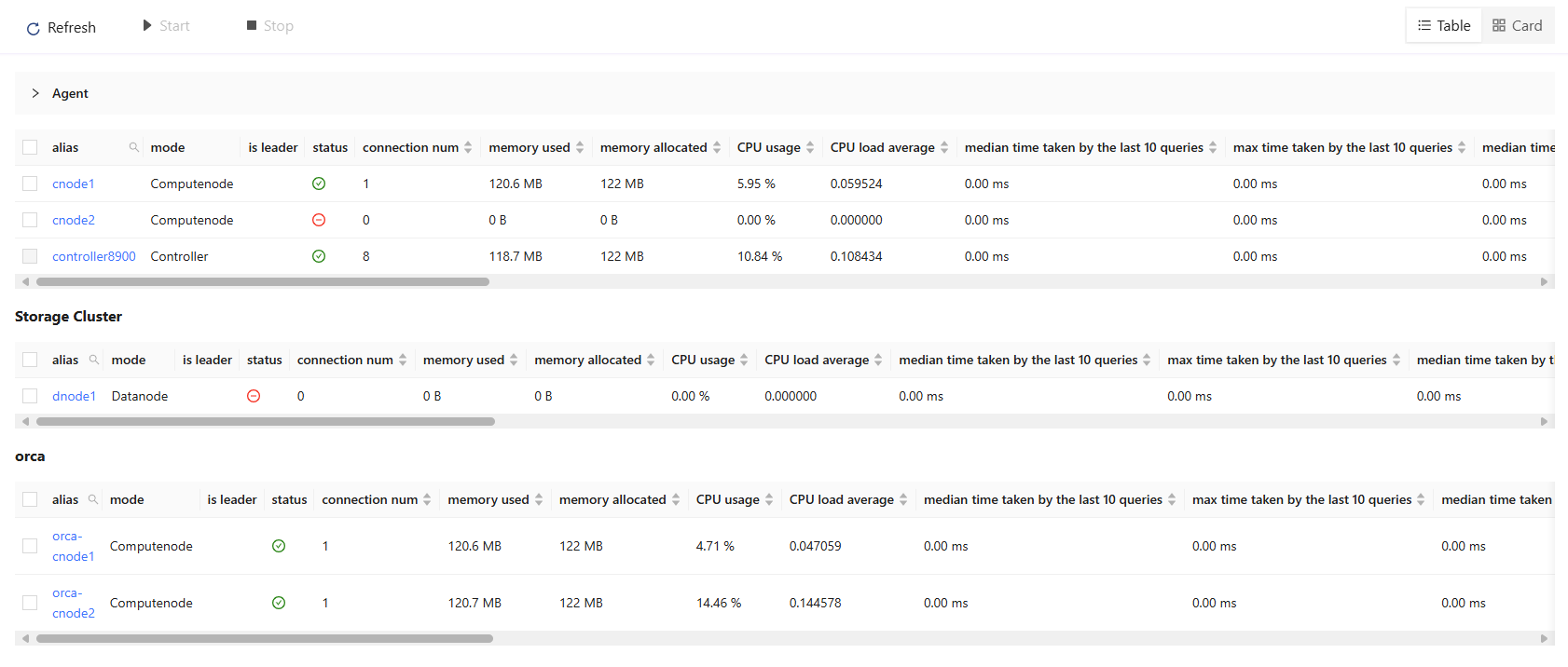 - Click ⏹ to stop the selected data nodes.
