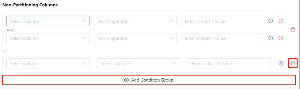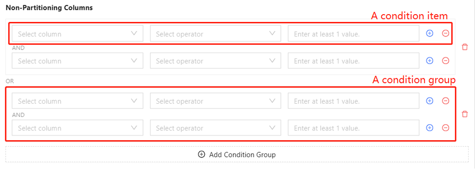 Non-Partitioning Columns section consists of condition items and condition groups.