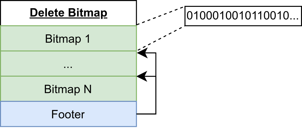 The following figure illustrates a delete bitmap file structure.