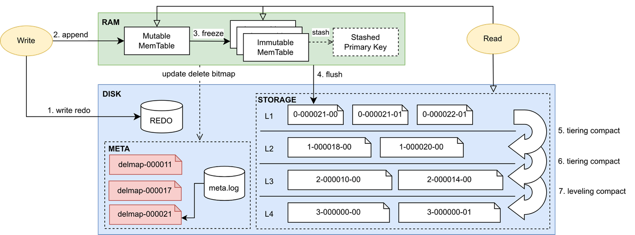 - Immutable MemTable: When the Mutable MemTable reaches its capacity, its data is sorted by the primary key and converted into an Immutable MemTable.