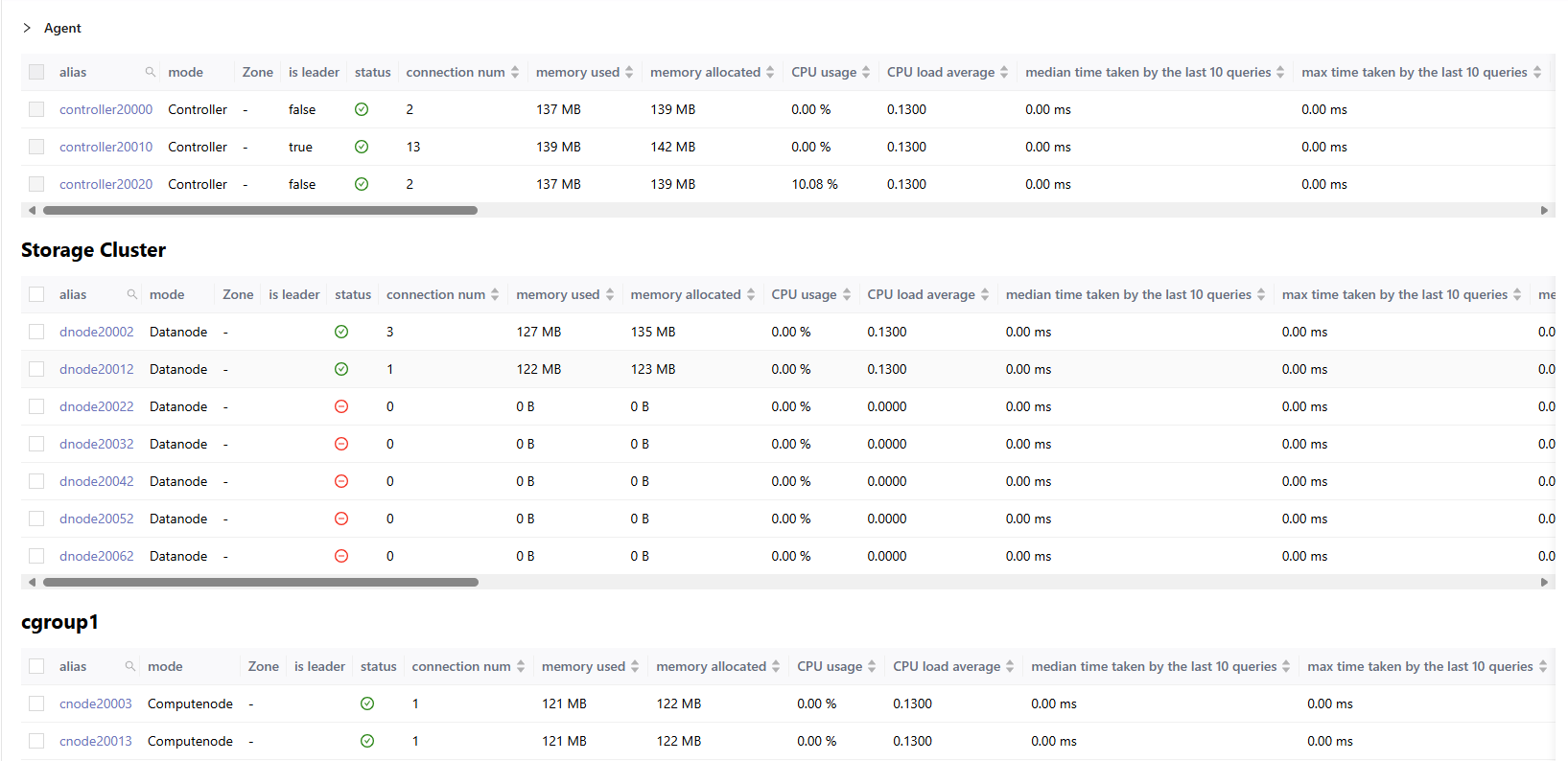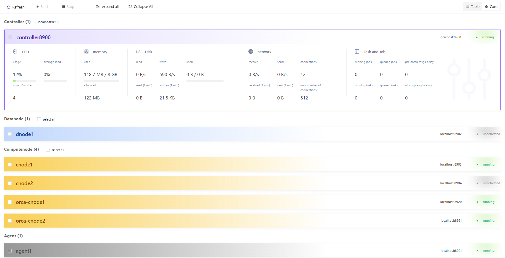 - Click ⏹ to stop the selected data nodes.
