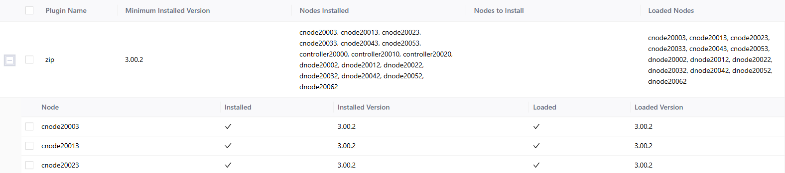 Click the + button before a plugin to view its installation and loading status across individual nodes.