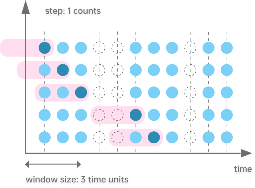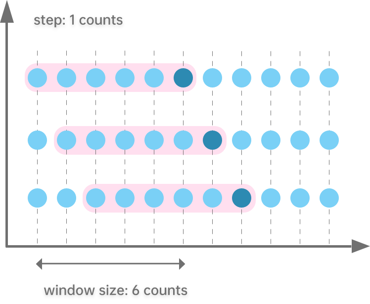 the sliding window is based on element counts.