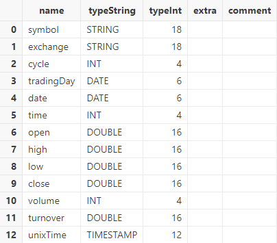 update schemaTB set name = ["securityID","exchange","cycle","tradingDay","date","time","open","high","low","close","volume","turnover","unixTime"]
