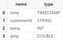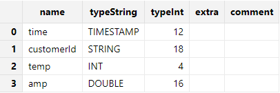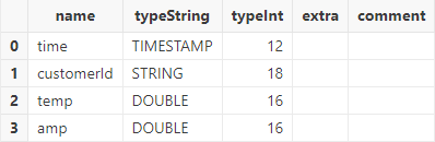 Call function schema to view the table schema. Column