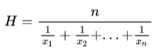 The formula expresses the harmonic mean as the reciprocal of the arithmetic mean of the reciprocals of the given set of observations. With the MapReduce model, we can calculate the arithmetic mean of the data in each partition in parallel during the map phase, then calculates the reciprocal of the weighted sum of all map results in the reduce phase.