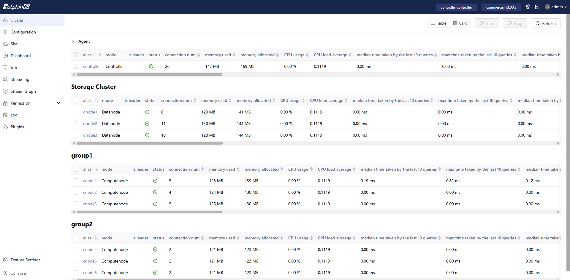 As shown in Figure 7-2, in the stream graph module of the web interface, the stream graph submitted on cnode1 is split and then dispatched to cnode1, cnode2, and cnode3, which all belong to the same compute group group1. To ensure compute resource isolation, the system does not dispatch tasks to nodes in other compute groups.
