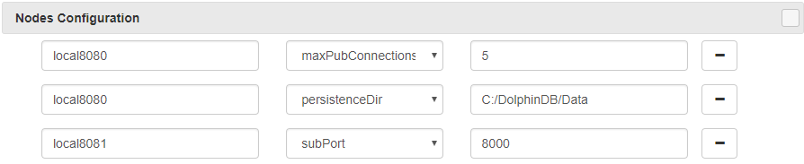 dolphindb -home C:/DolphinDB/clusters/inst1 -logFile inst1.log -localSite localhost:8080:local8080 -maxPubConnections 5 -persistenceDir C:/DolphinDB/Data