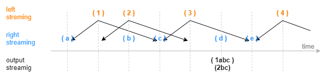 (2) When useSystemTime=false, the engine joins the streams based on the time column of the input. The join is triggered when a right record arrives with a timestamp greater than the right boundary of the window. You can also set the parameter delayedTime to define a timeout trigger.