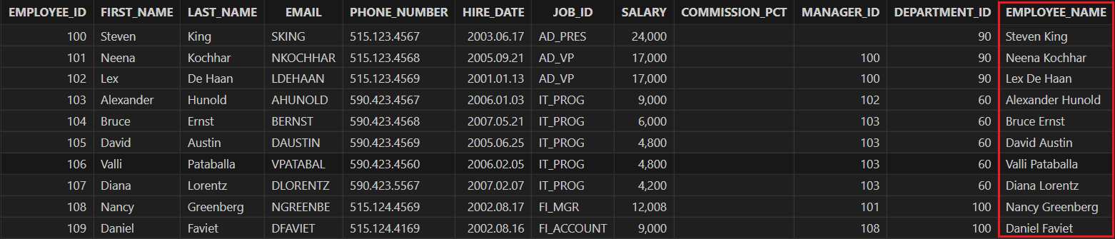 concatcan concatenate multiple strings, e.g.,select concat('my', 's', 'ql', '8'), while Oracleconcatcan only concatenate two strings.