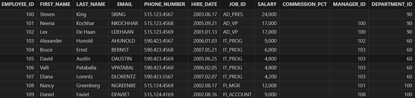 " decode(job_id, 'IT_PROG' , 'Programmer', 'FI_ACCOUNT', 'Accountant', 'Others') as jobs_title\n" +