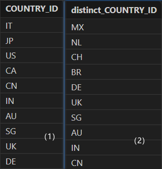distinctcan be used to eliminate duplicate records from multiple columns. As of the current version, it cannot be used withgroup by,context byorpivot by; order bysupportsnulls first/last;with asclause;union/union all;any/all;- Multiple joins (including cross join, inner join, left join, right