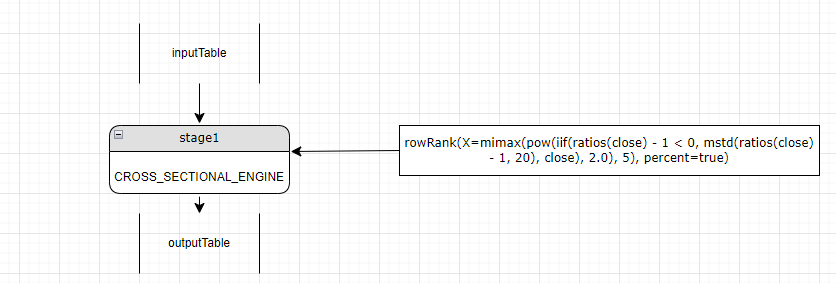 Stage 2: The cross-sectional engine uses stage 1's output as input to calculate rowRank. The metric can now convert to: