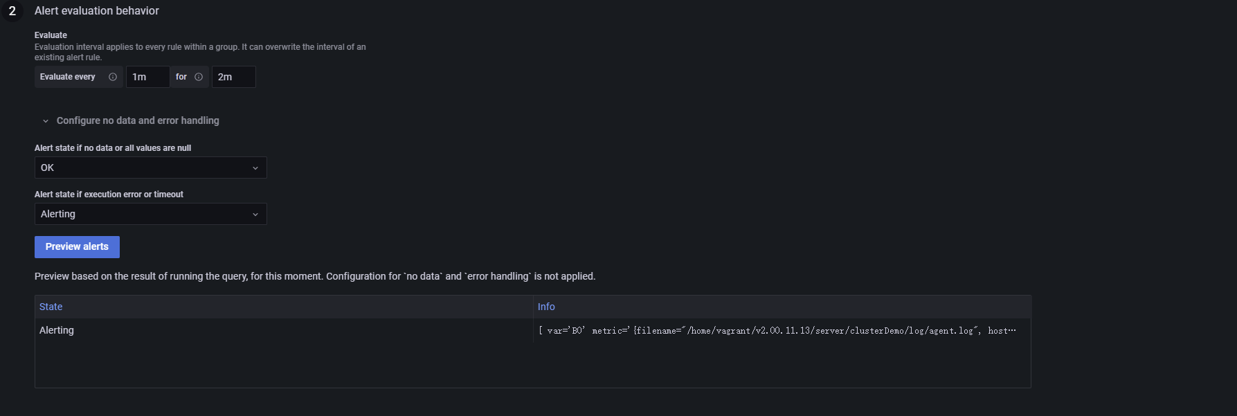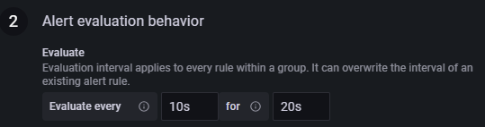 Note: The "For" duration must be at least twice the "Evaluate every"