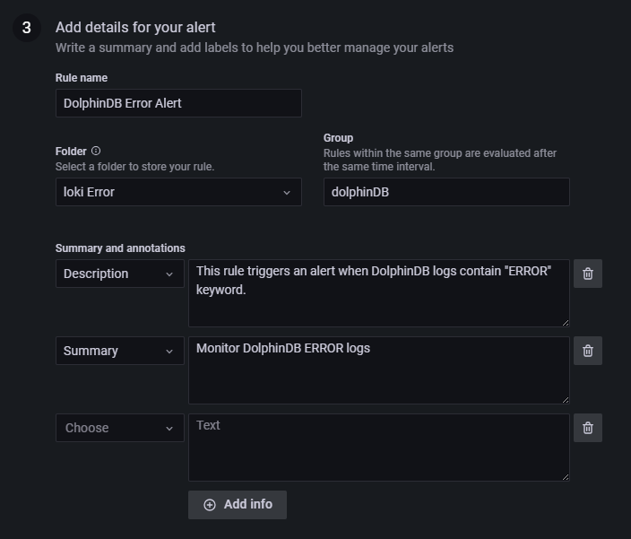 Efficient log monitoring is key to maintaining stability in complex big data systems. DolphinDB, a high-performance time-series database, requires real-time log analytics to support high availability (HA) operations. This guide introduces a lightweight monitoring solution built on Loki, Promtail, and Grafana. It covers system deployment, multi-node configuration, log label extraction, alert rule definition, and common issue diagnosis.
