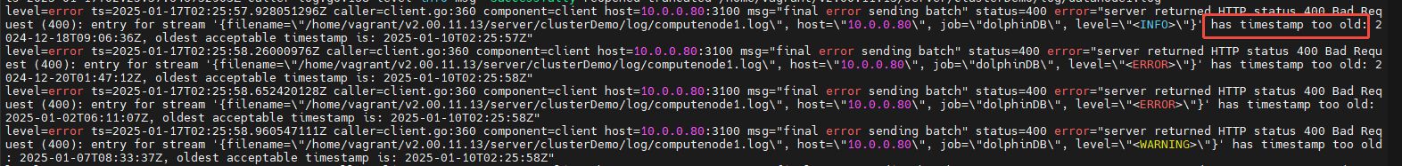 After applying this configuration and restarting Promtail and Loki, you may encounter a "timestamp too old" error (see Figure 5-1).