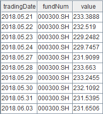 fund_dui_OLAP.columns = ['tradingDate', 'fundNum', 'value', 'price']